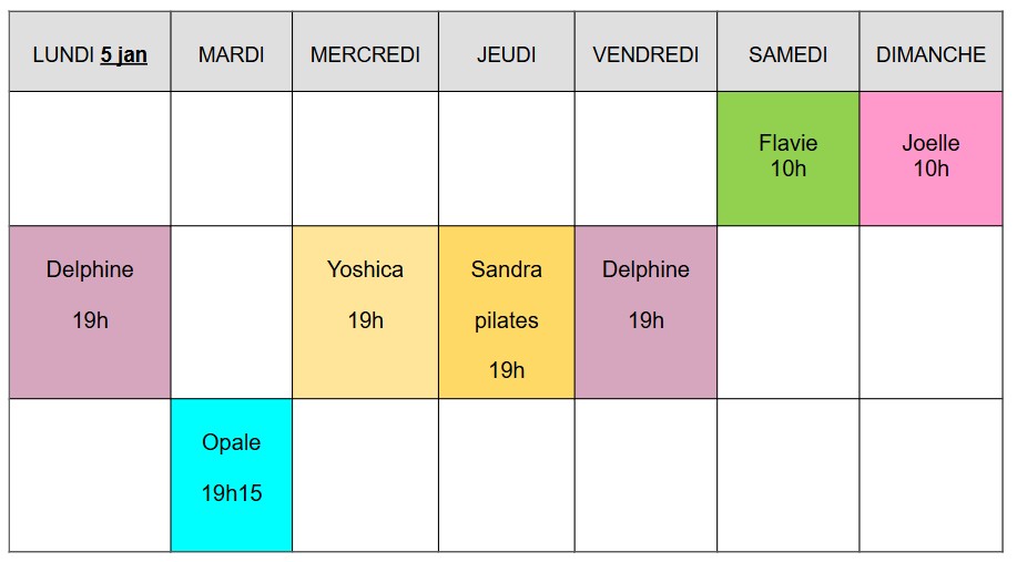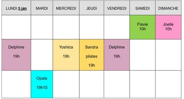Planning de la semaine en cours :