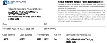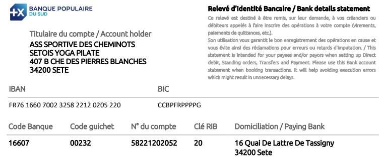 Voici le RIB de l'association (merci de prévenir du règlement pour suivi) :