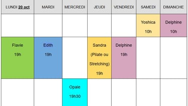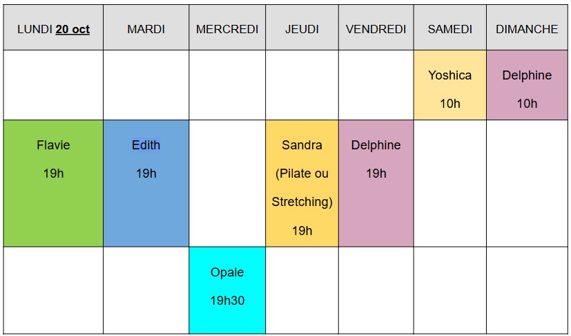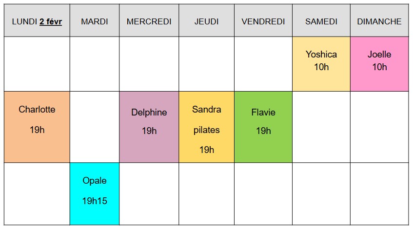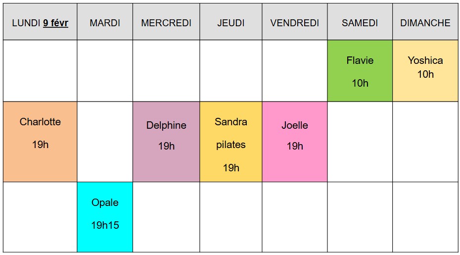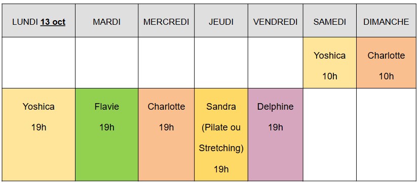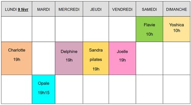 Planning de la semaine en cours :